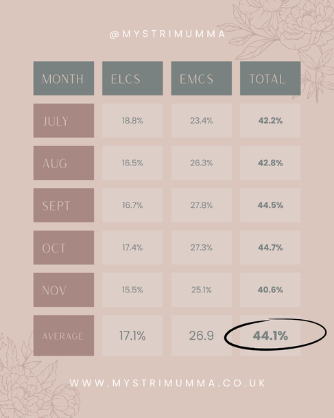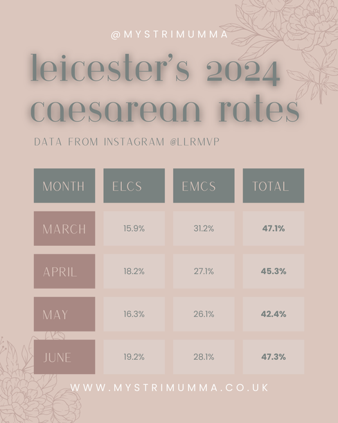 If you live in Leicester, these are the recent statistics released from March 2024- November 2024 about Caesarean birth rates. The average rate in Leicester for 2024 Caesarean Births is